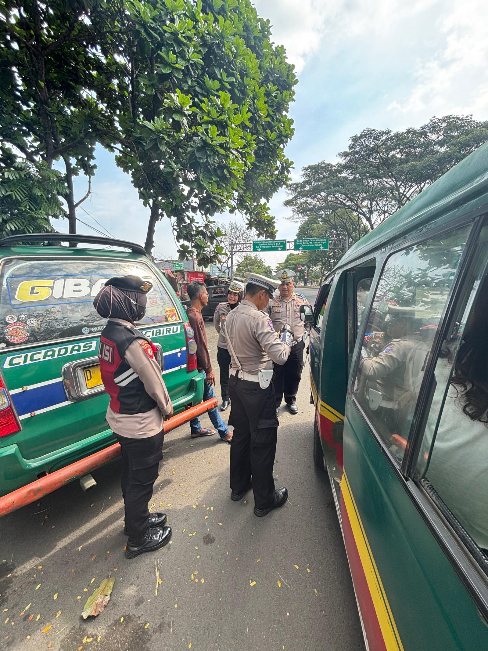 Petugas Ditlantas Polda Jabar memberikan himbauan kepada masyarakat pengguna jalan dan menegur langsung sejumlah sopir angkutan kota (angkot) yang diketahui memarkirkan kendaraannya secara permanen di lokasi tersebut, sehingga menyebabkan hambatan lalu lintas.