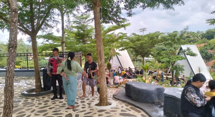 CIAMIS ~ Personel Polres Ciamis Polda Jabar melaksanakan pengamanan dikawasan obyek wisata dalam rangka Operasi Ketupat Lodaya 2025. Salah satunya seperti yang dilaksanakan jajaran Polsek Cisaga Polres Ciamis Polda Jabar di kawasan obyek wisata Jinju Asia Park Jl. Cisaga Rancah Rt 01 Rw 03, Dusun Pasirlugina, Desa Wangunjaya, Kecamatan Cisaga, Kabupaten Ciamis, Sabtu (5/4/2025).