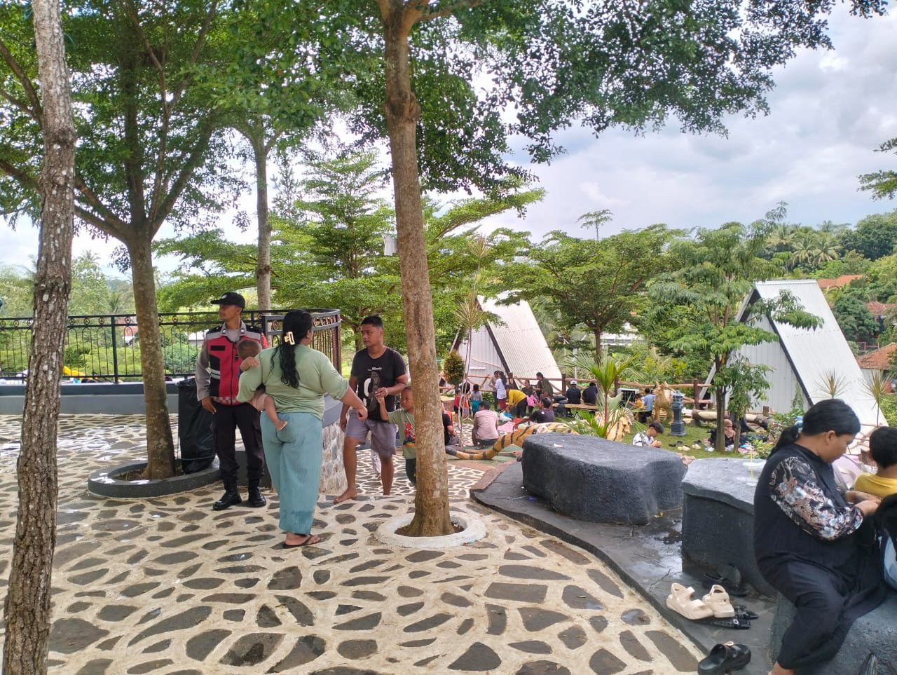 CIAMIS ~ Personel Polres Ciamis Polda Jabar melaksanakan pengamanan dikawasan obyek wisata dalam rangka Operasi Ketupat Lodaya 2025. Salah satunya seperti yang dilaksanakan jajaran Polsek Cisaga Polres Ciamis Polda Jabar di kawasan obyek wisata Jinju Asia Park Jl. Cisaga Rancah Rt 01 Rw 03, Dusun Pasirlugina, Desa Wangunjaya, Kecamatan Cisaga, Kabupaten Ciamis, Sabtu (5/4/2025).