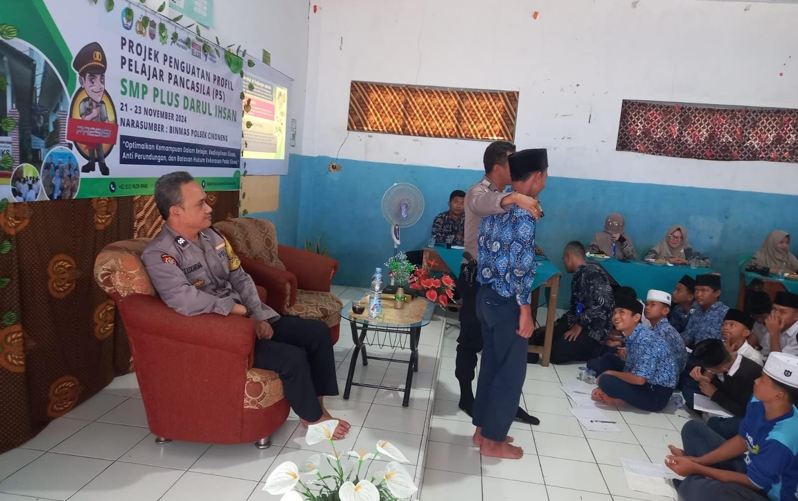 Kegiatan ini dilaksanakan oleh seluruh personel Polres Ciamis Polda Jabar, mulai dari satuan fungsi hingga Polsek jajaran. Salah satunya seperti yang dilaksanakan oleh jajaran Polsek Cikoneng Polres Ciamis Polda Jabar yang menjadi pemateri dan pemberi edukasi tentang Anti Perundungan dan Kekerasan Pada Anak Sekolah dalam pelajaran Projek Penguatan Profil Pelajar Pancasila (P5) di SMP Plus Darul Ihsan Sukaresik, Desa Sukaresik, Kecamatan Sindangkasih, Kabupaten Ciamis, Jawa Barat, Kamis (21/11/2024).