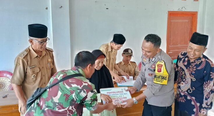CIAMIS ~ Polsek Pamarican Polres Ciamis Polda Jabar monitoring penyaluran Bantuan Langsung Tunai (BLT) warga masyarakat Desa Sukajadi. Kegiatan itu dilaksanakan di Aula Desa Sukajadi, Kecamatan Pamarican, Kabupaten Ciamis, Jawa Barat, Senin (17/3/2025).