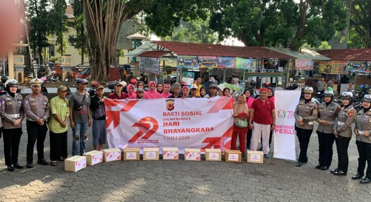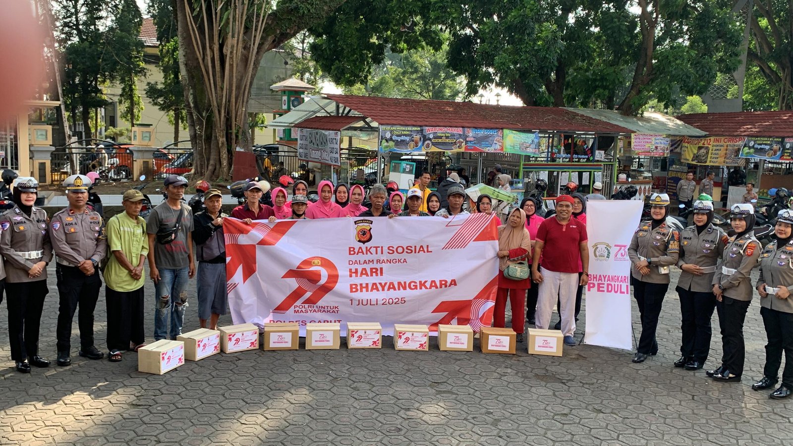 Garut – Dalam rangka menyambut Hari Ulang Tahun (HUT) Bhayangkara ke-79, Polres Garut bersama seluruh Polsek jajaran melaksanakan kegiatan Bakti Sosial serentak dengan membagikan paket sembako kepada masyarakat yang membutuhkan, Jumat (13/06/2025).