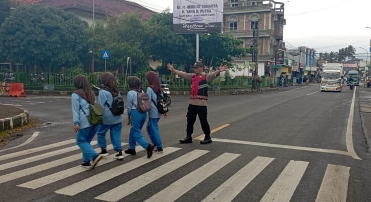CIAMIS ~ Jajaran Polres Ciamis Polda Jabar melaksanakan pelayanan masyarakat dengan turun langsung ke jalan di jalur-jalur padat untuk membantu orang menyebrang serta pengaturan lalu lintas saat pagi hari. Kegiatan ini dilaksanakan oleh seluruh personel Satuan Fungsi dan Polsek jajaran Polres Ciamis Polda Jabar.