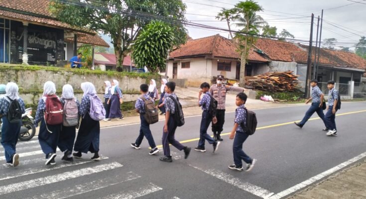 CIAMIS ~ Polsek Cihaurbeuti Polres Ciamis Polda Jabar melaksanakan kegiatan pelayanan masyarakat di pagi hari berupa pengaturan arus lalu lintas dengan sasaran anak sekolah. Kegiatan ini dilaksanakan Depan SMPN 2 Cihautbeuti, Cihaurbeuti, Kecamatan Cihaurbeuti, Kabupaten Ciamis, Jawa Barat, Rabu (30/4/2025).