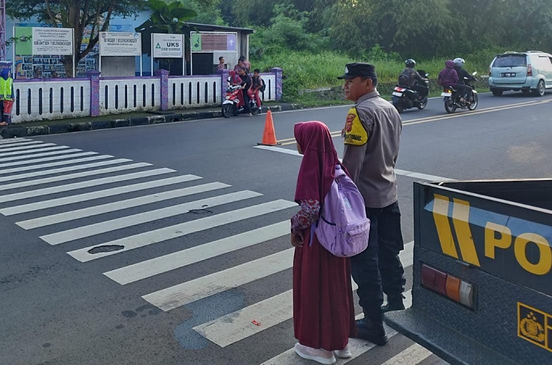 CIAMIS ~ Polsek Cijeungjing Polres Ciamis Polda Jabar melaksanakan kegiatan pelayanan masyarakat di pagi hari berupa pengaturan arus lalu lintas dengan sasaran anak sekolah. Kegiatan ini dilaksanakan Depan SDN 1 Bojongmengger di Jalan Raya Ciami-Banjar, Desa Bojongmengger, Kecamatan Cijeungjing, Kabupaten Ciamis, Jawa Barat, Kamis (5/6/2025).