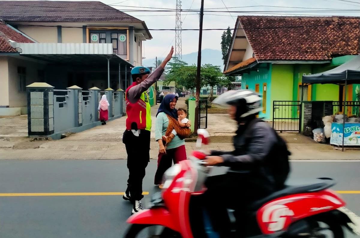 Tak hanya itu, kegiatan ini juga dilaksanakan oleh Aiptu Suharso di Jalan Raya depan SMPN 1 Cipaku. Anggota hadir memberikan pelayanan membantu masyarakat menyebrang sekaligus pengaturan lalu lintas di pagi hari.