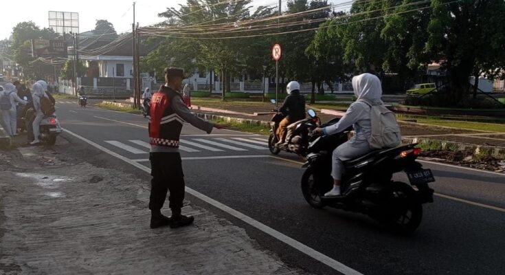 “Maka dari itu kami siagakan personel di area padat lalu lintas. Seperti jalan raya depan sekolah hingga perkantoran maupun persimpangan padat lalu lintas. Anggota hadir untuk mengatur lalu lintas, menyebrangkan anak sekolah dan orang tua dan pelayanan masyarakat lainnya, sehingga terciptanya kenyamanan dan keamanan di masyarakat,” kata AKP Iis Yeni Idaningsih.