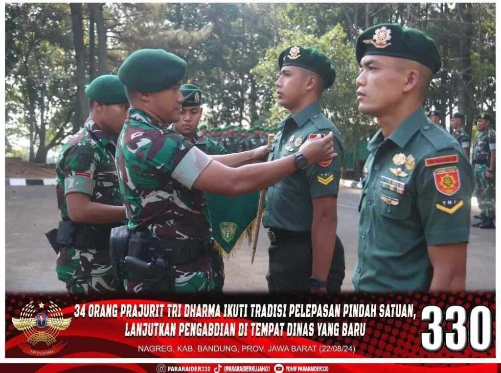Fenomena ini terlihat tatkala Danyonif 330/Tri Dharma, Letkol Inf Dedy Pungky Irawanto S.I.P., M.I.Pol. memimpin acara tradisi pelepasan 34 orang personel Yonif 330/Tri Dharma yang pindah satuan, bertempat di halaman Mako Yonif 330/Tri Dharma, Nagreg, Kab. Bandung, pada Kamis (22/08/2024).