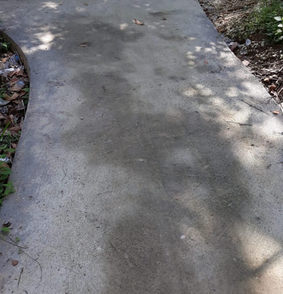 Pantauan di lapangan menunjukkan bahwa kondisi jalan rabat beton tersebut tampak kurang padat dan mudah rapuh. Secara logika konstruksi, kualitas jalan rabat beton harus kuat dan tahan lama, mengingat fungsinya sebagai akses utama aktivitas warga. Namun, dari hasil pengamatan, bagian tengah jalan terlihat lebih tipis dibanding bagian pinggirnya, yang mengindikasikan potensi pengurangan volume atau ketidaksesuaian dalam proses pengecoran.