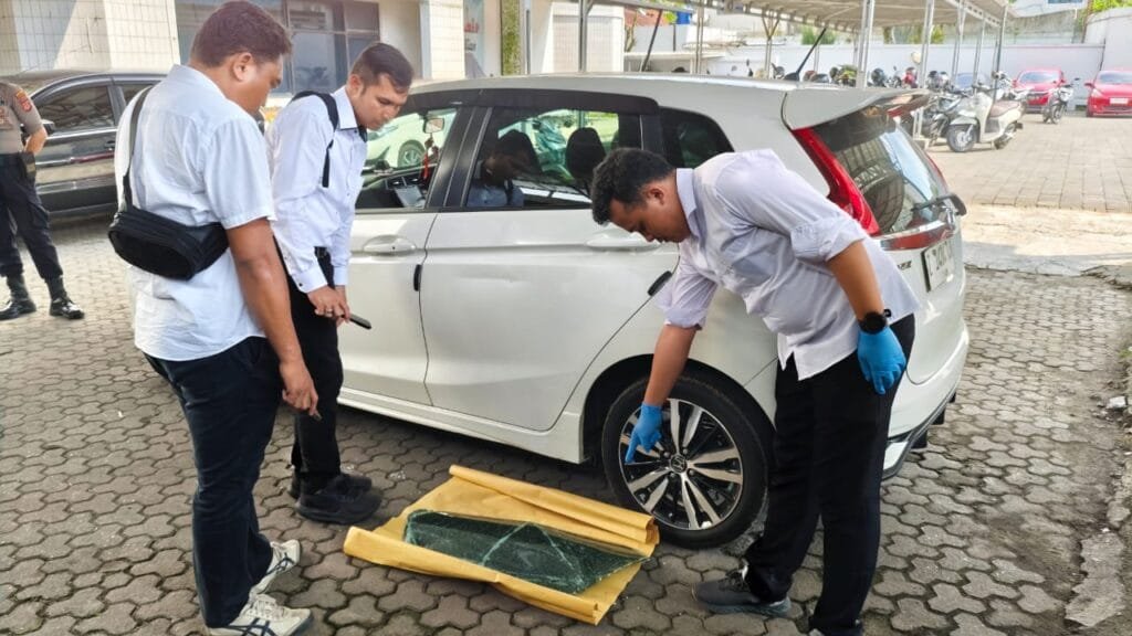 “Menurut keterangan korban, dia sempat pergi ke depan bank dengan maksud membeli kopi, dan saat kembali kondiai kaca mobil sebelah kiri sudah pecah,” jelasnya
