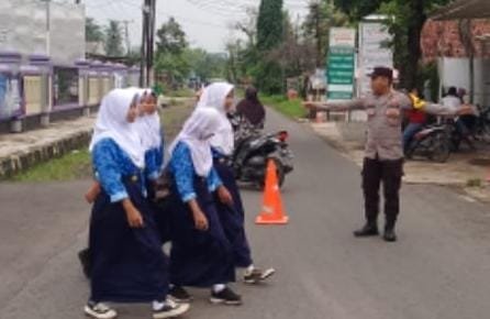 Jejak-kriminal.com, CIAMIS ~ Polsek Lakbok Polres Ciamis Polda Jabar melaksanakan kegiatan pelayanan masyarakat berupa pengaturan arus lalu lintas dengan sasaran anak sekolah. Kegiatan ini dilaksanakan disejumlah titik keramaian wilayah Kecamatan Lakbok dan Purwadadi. Kegiatan ini dilaksanakan di SMPN 1 Lakbok, Kecamatan Lakbok, Kabupaten Ciamis, Jawa Barat, Rabu (18/12/2024).