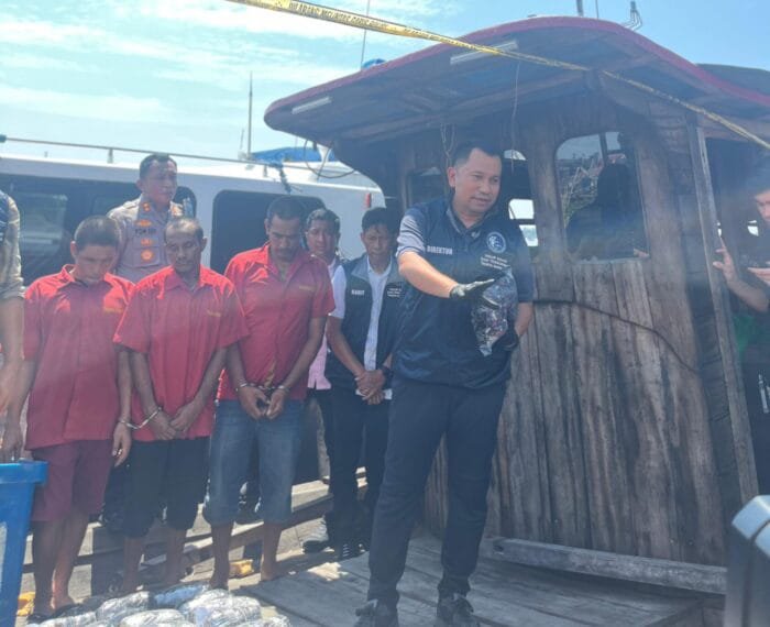 “Peredaran narkoba yang dilakukan ketiga orang ini dengan modus ship to ship. Barang bukti narkoba ini dibawa dari Malaysia menggunakan kapal lalu dipindahkan ke kapal lain di tengah perairan untuk dibawa masuk ke Indonesia melalui perairan Tanjung Api, Sumatera Utara,” ungkapnya.
