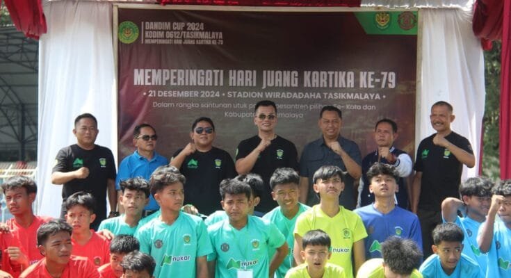 Tasikmalaya .Jejak-kriminal.com-Memperingati Hari Juang Kartika TNI AD ke-79, Kodim 0612 Tasikmalaya mengadakan Turnamen Sepak Bola Piala Dandim Cup antar Yayasan pondok pesantren Yatim Piatu Se Kota Dan Kabupaten Tasikmalaya di Stadion Wiradadaha, Sabtu (21/12/2024) pagi. Acara ini diikuti oleh 10 tim dari berbagai yayasan di Kota dan Kabupaten Tasikmalaya.