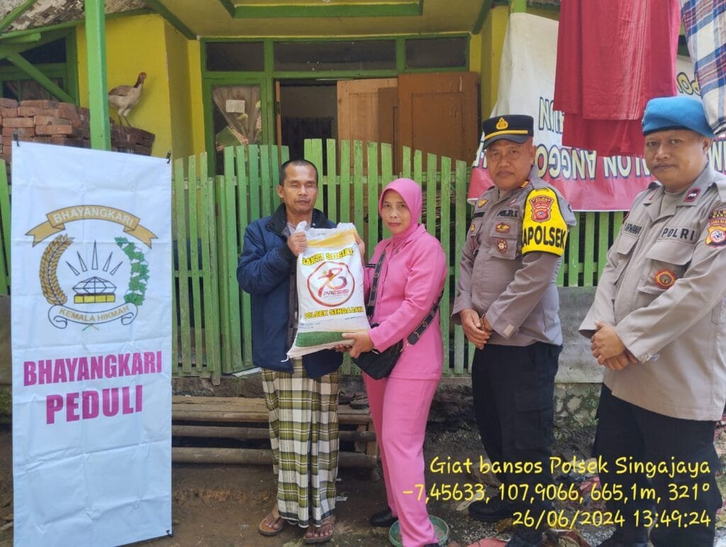 Turut hadir dalam kegiatan tersebut antara lain adalah Kapolsek Singajaya, Kanit Binmas, Babhinkamtibmas, Bhayangkari Ranting Singajaya serta partisipasi aktif dari warga masyarakat setempat. Kehadiran mereka memperkuat semangat kebersamaan dalam memberikan bantuan kepada sesama yang membutuhkan.