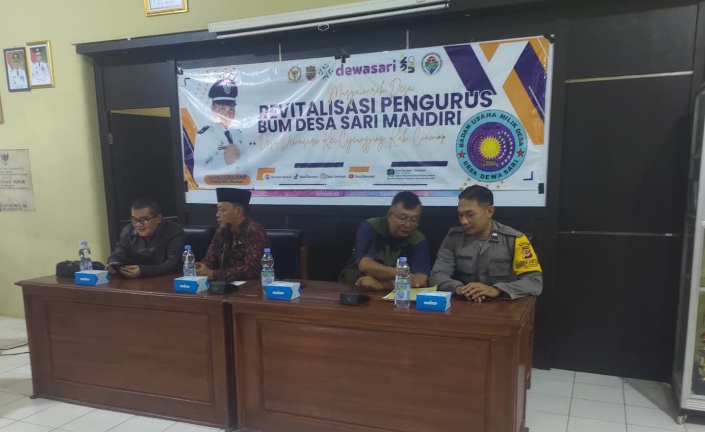 CIAMIS ~ Personel Polsek Cijeungjing Polres Ciamis Polda Jabar melaksanakan koordinasi dan komunikasi bersama warga dalam rangka cipta kondisi antisipasi gangguan kamtibmas. Ini dilakukan saat momen sekaligus mengikuti Musyawarah Desa Revitalisasi Pengurus Bumdesa Sari Mandiri Desa Dewasari. Acara ini berlangsung di Aula Kantor Desa Dewasari, Kecamatan Cijeungjing, Kabupaten Ciamis, Jawa Barat, Jumat (4/7/2025).