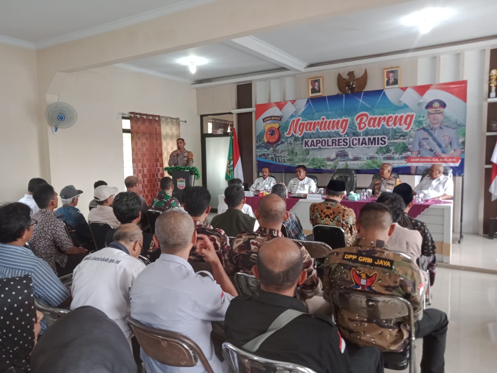 CIAMIS ~ Antisipasi gangguan kamtibmas, jajaran Polres Ciamis Polda Jabar secara intens melakukan koordinasi dan komunikasi dengan masyarakat serta tokoh. Tak terkecuali seperti yang dilakukan oleh jajaran personel Polsek Cijeungjing Polres Ciamis Polda Jabar dengan tokoh di wilayah Desa Dewasari, Kecamatan Cijeungjing, Kabupaten Ciamis, Jawa Barat, Kamis (20/2/2025).