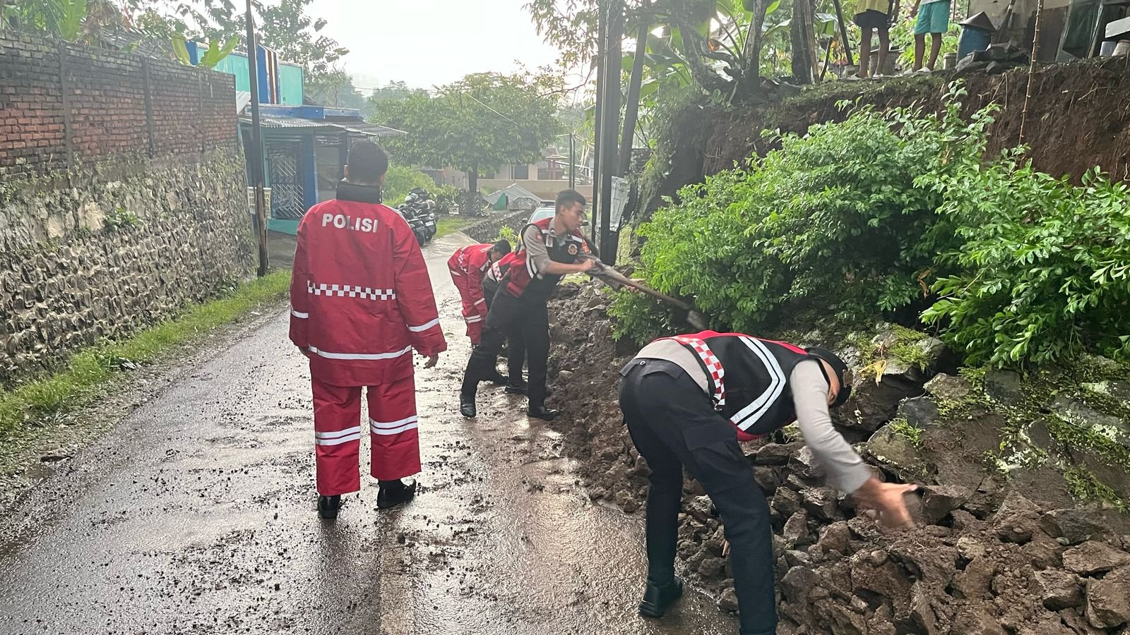 Saat itu, anggota Satuan Samapta Polres Ciamis langsung mendatangi lokasi kejadian. Mereka yang hadir terdiri dari Unit Patroli Roda 2 dan Unit Patroli Roda 4 serta anggota Piket Jaga Pos Alun Alun Ciamis. Anggota hadir bagian dari respon atas informasi yang diberikan oleh masyarakat terhadap peristiwa bencana alam longsor yang menimbulkan kerusakan.