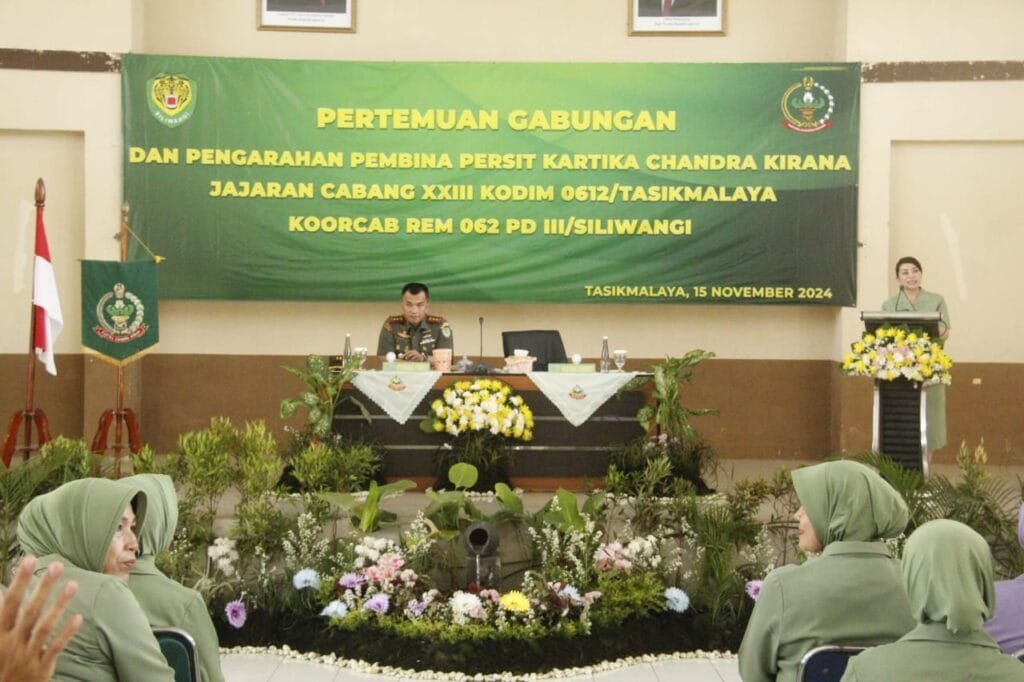 Tasikmalaya, Jumat, 15 November 2024 — Pertemuan gabungan anggota Persit Kartika Chandra Kirana Cabang XXIII Kodim 0612/Tasikmalaya digelar pada Jumat (15/11) di Gedung Juang, Tasikmalaya. Acara ini dihadiri oleh Kapten Inf Iyan Sudaryana selaku Pasi Pers Kodim 0612 dan Komandan Kodim (Dandim) 0612/Tasikmalaya, Letkol Arm Yan Octa Rombenanta, S.Sos., yang hadir bersama Ny. Para Octa Rombenanta selaku Ketua Persit Kodim 0612.
