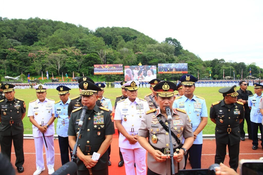 Di kesempatan yang sama, Panglima TNI mengucapkan selamat atas keberhasilan para Prajurit Taruna Akademi TNI dan Bhayangkara Taruna Akademi Kepolisian yang telah menyelesaikan pendidikan kurang lebih selama 4 bulan.