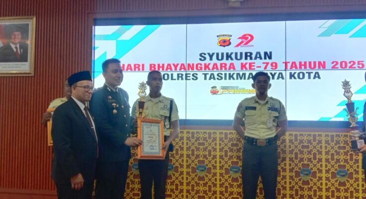 Penghargaan tersebut diserahkan langsung oleh Kaporles Tasikmalaya Kota AKBP Moh Faruk Rozi, S.H., S.I.K., M.Si, dalam upacara HUT Bhayangkara yang digelar di Gedung kantor Polres Tasikmalaya Kota. Salah satu anggota satpam yang menerima penghargaan adalah Miftahudin yang dinilai aktif dan sigap dalam menjalankan tugas pengamanan dan koordinasi bersama pihak kepolisian.