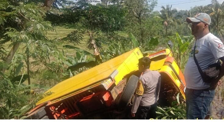 GARUT, Sebuah kendaraan Mitsubishi Colt Diesel dengan nomor polisi Z-8876-WT mengalami kecelakaan tunggal di Jalan Raya Sukajaya Cisewu, tepatnya di Kampung Rahong RT 003 RW 004, Desa Sukajaya, Kecamatan Cisewu, Kabupaten Garut, pada Kamis (7/8/2025).