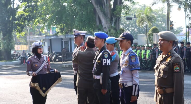 Ciamis – Dalam rangka pengamanan Hari Raya Idul Fitri 1446 H, Polres Ciamis menggelar Apel Gelar Pasukan Operasi Ketupat Lodaya 2025 di Lapangan Apel Setda Kabupaten Ciamis, pada Kamis, 20 Maret 2025, pukul 08.00 WIB. Apel ini dipimpin langsung oleh Bupati Ciamis, Dr. H. Herdiat Sunarya, M.M., dengan penanggung jawab kegiatan Kabag Ops Polres Ciamis, Kompol Aep Saepudin, S.H., M.M..