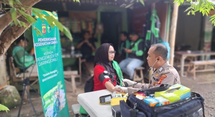 Ciamis – Dalam semangat kebersamaan dan kepedulian menyambut Hari Ulang Tahun Bhayangkara Ke-79, Polres Ciamis sukses menggelar kegiatan pemeriksaan kesehatan gratis. Bertempat di Pangkalan Ojek Online Islamic Center Ciamis, puluhan driver ojek online antusias mengikuti pemeriksaan tersebut. Rabu (11/6/2025)