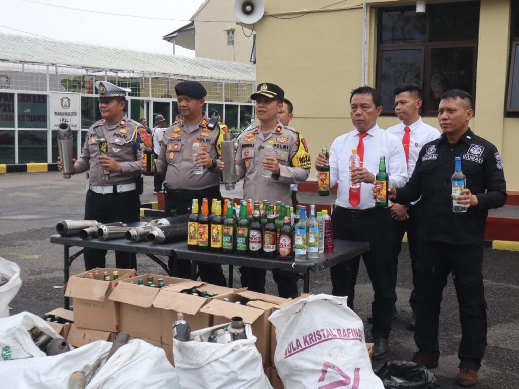Polres Cianjur bersama Polsek Jajaran berhasil mengamankan sebanyak 276 buah knalpot yang tidak sesuai standarisasi atau spesifikasi teknis serta menyita minuman keras (miras) sebanyak 81 botol atau kantong.