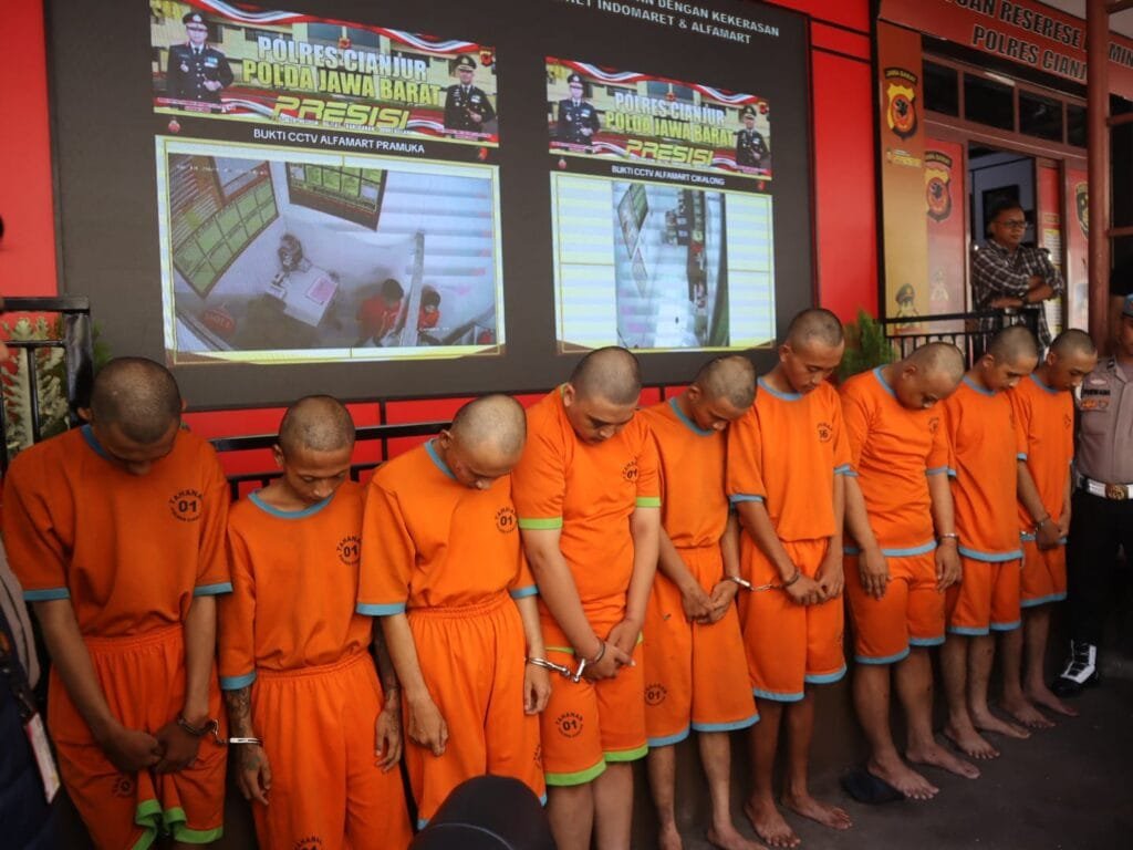 Kapolres Cianjur menambahkan, dari kejadian tersebut pihak minimarket mengalami kerugian sebesar Rp172.158.699 (seratus tujuh puluh dua juta seratus lima puluh delapan ribu enam ratus sembilann puluh Sembilan rupiah). Atas perbuatannya, para pelaku dikenakan Pasal 365 ayat (1) dan (2) ke 2e KUHP Jo Pasal 64 ayat (1) KUHP.