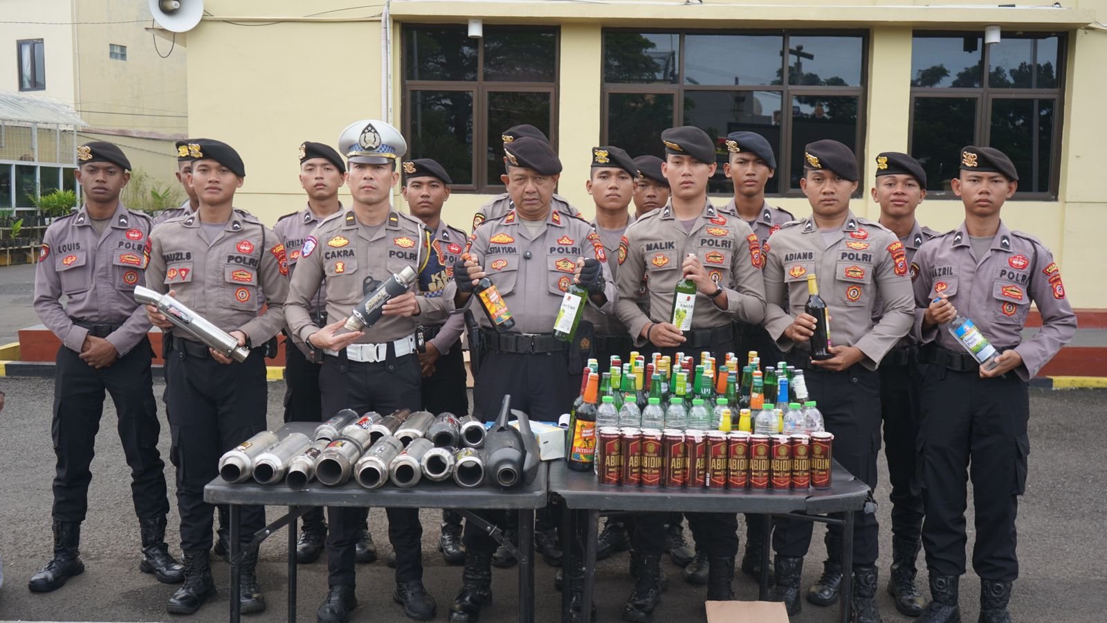 IPTU Budi menambahkan, knalpot brong yang disita berasal dari pengendara sepeda motor yang melanggar aturan lalu lintas dan mengganggu kenyamanan masyarakat. Sedangkan miras yang diamankan merupakan hasil razia di sejumlah lokasi yang diduga menjadi tempat peredaran miras.