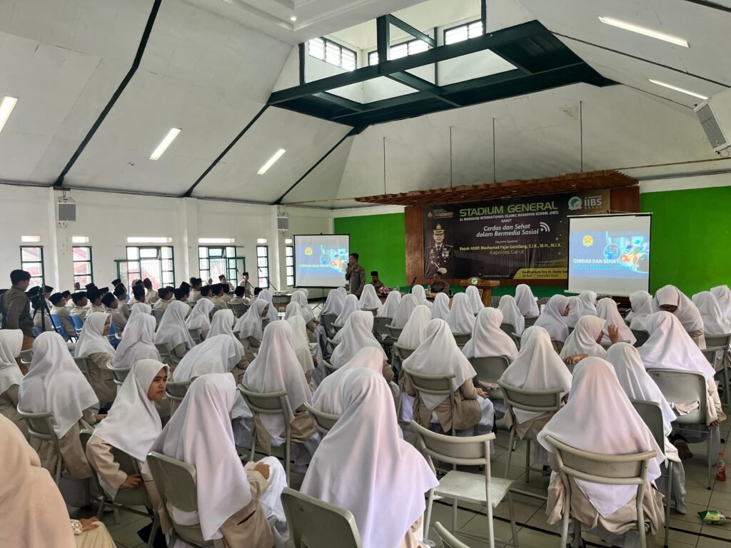Kegiatan yang digelar di aula SMA Al Mashduqi tersebut dihadiri oleh Kasi Humas Polres Garut IPDA Susilo Adhi, S.H., dan Kanit Bintibmas Dhaikamtibmas Aiptu Umar Taufik.