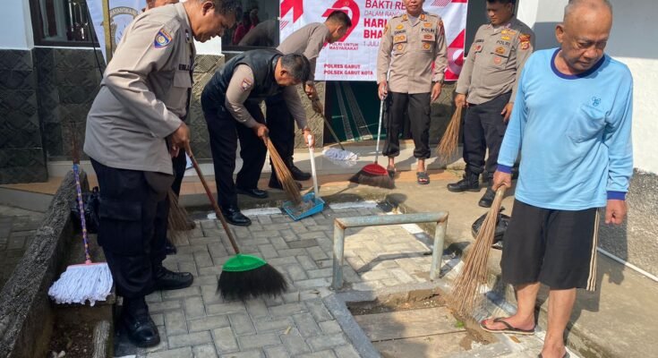 Garut – Dalam rangka memperingati Hari Ulang Tahun (HUT) Bhayangkara ke-79, Polres Garut bersama seluruh Polsek jajaran melaksanakan kegiatan Bakti Religi dengan menggelar kerja bakti membersihkan masjid di berbagai wilayah Kabupaten Garut, Jumat (13/06/2025).