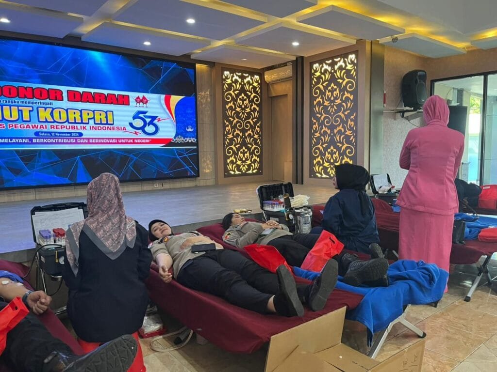 Garut | Dalam rangka memperingati HUT Korpri ke 53 Polres Garut mengadakan kegiatan donor darah yang di laksanakan di Aula Mumun Surachman Polres Garut. Selasa (12/11/2024).