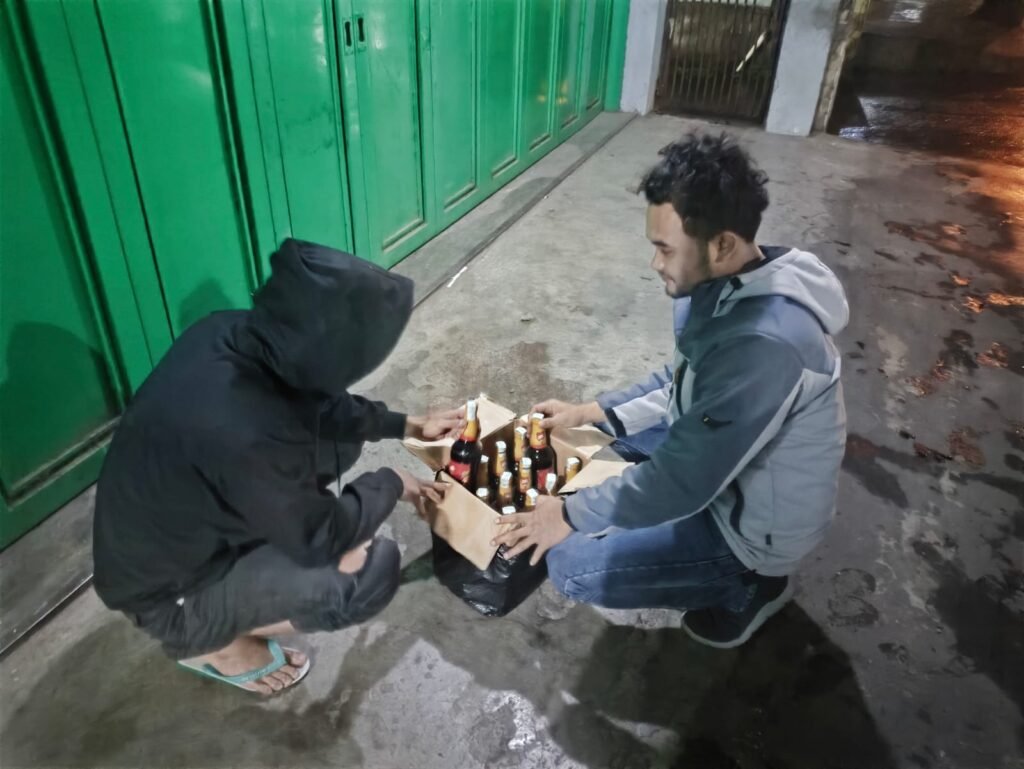 Petugas mengamankan barang bukti berupa minuman beralkohol dan Melakukan pendataan dan interogasi terhadap pelaku serta Memberikan penyuluhan terkait bahaya minuman beralkohol, baik bagi kesehatan maupun dampaknya terhadap masyarakat.