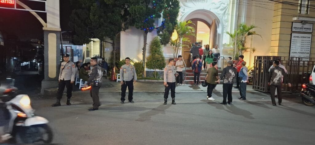 Garut – Polres Garut laksanakan pengamanan Kegiatan Perayaan Natal Youth Forum Kerjasama Kristiani Garut (FKKG) yang bertempat di Gereja Injil Indonesia (GII) Garut, berlangsung dengan lancar dan penuh sukacita, Kamis malam, (26/12/2024).
