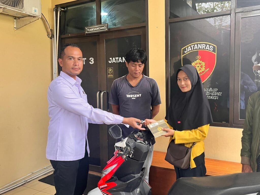 Serah terima motor tersebut dilakukan langsung oleh Kanit 3 (Jatanras) Reskrim Polres Garut, Ipda Hadiansyah Siregar, S.H kepada Ima Amalia yang merupakan pelapor dan korban pencurian tersebut.