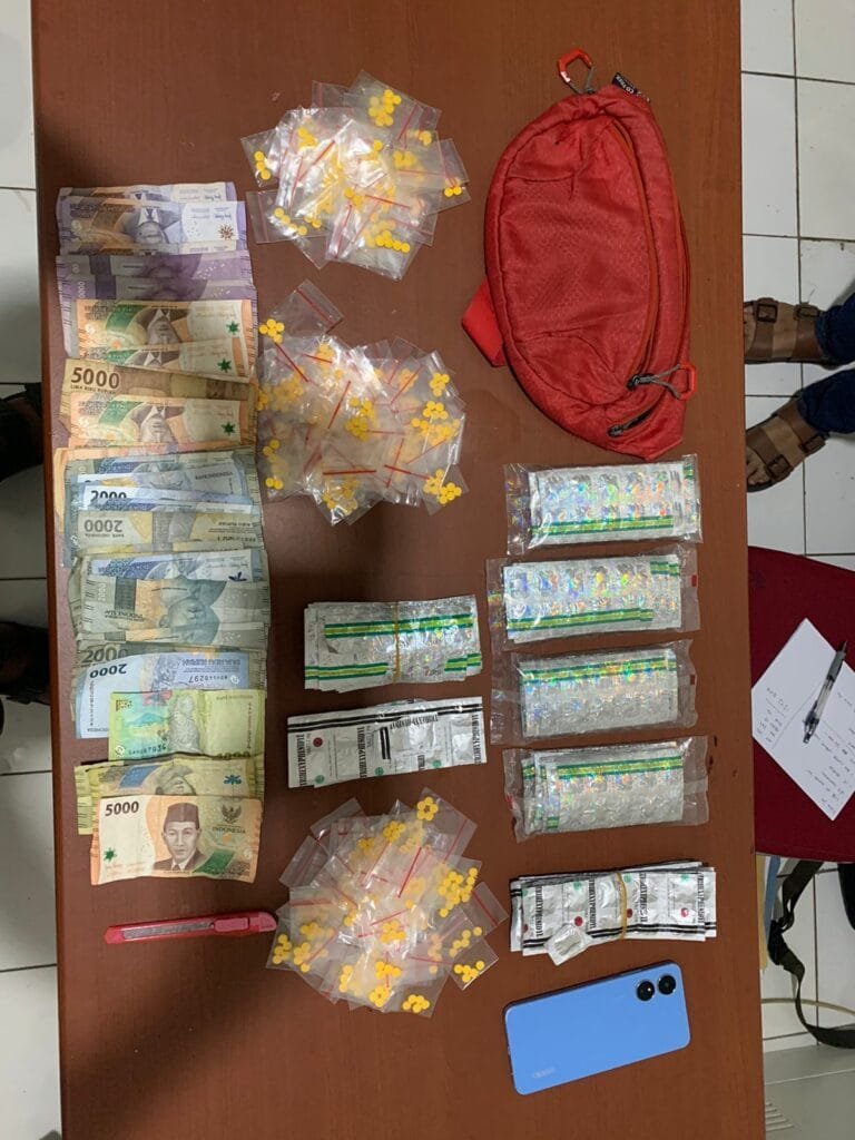 Lanjut Usep, Barang bukti yang ditemukan antara lain pil obat dengan berbagai jenis, di antaranya 557 butit Tramadol, 510 butir Hexymer, 146 butir Dextromethorphan, dan 119 butir Trihexyphenidyl, yang disimpan dalam kemasan yang mencurigakan.