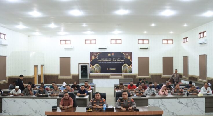 BELAWAN, jejak- kriminal.com– Polres Pelabuhan Belawan bersama Insan Media wilayah Medan Utara menggelar kegiatan pembagian takjil dan buka puasa bersama di Mapolres Pelabuhan Belawan, Kamis (13/3). Kegiatan ini dipimpin oleh Kapolres Pelabuhan Belawan AKBP Janton Silaban, S.H., S.I.K., M.K.P., yang diwakili oleh Wakapolres Kompol Dedy Dharma, S.H.