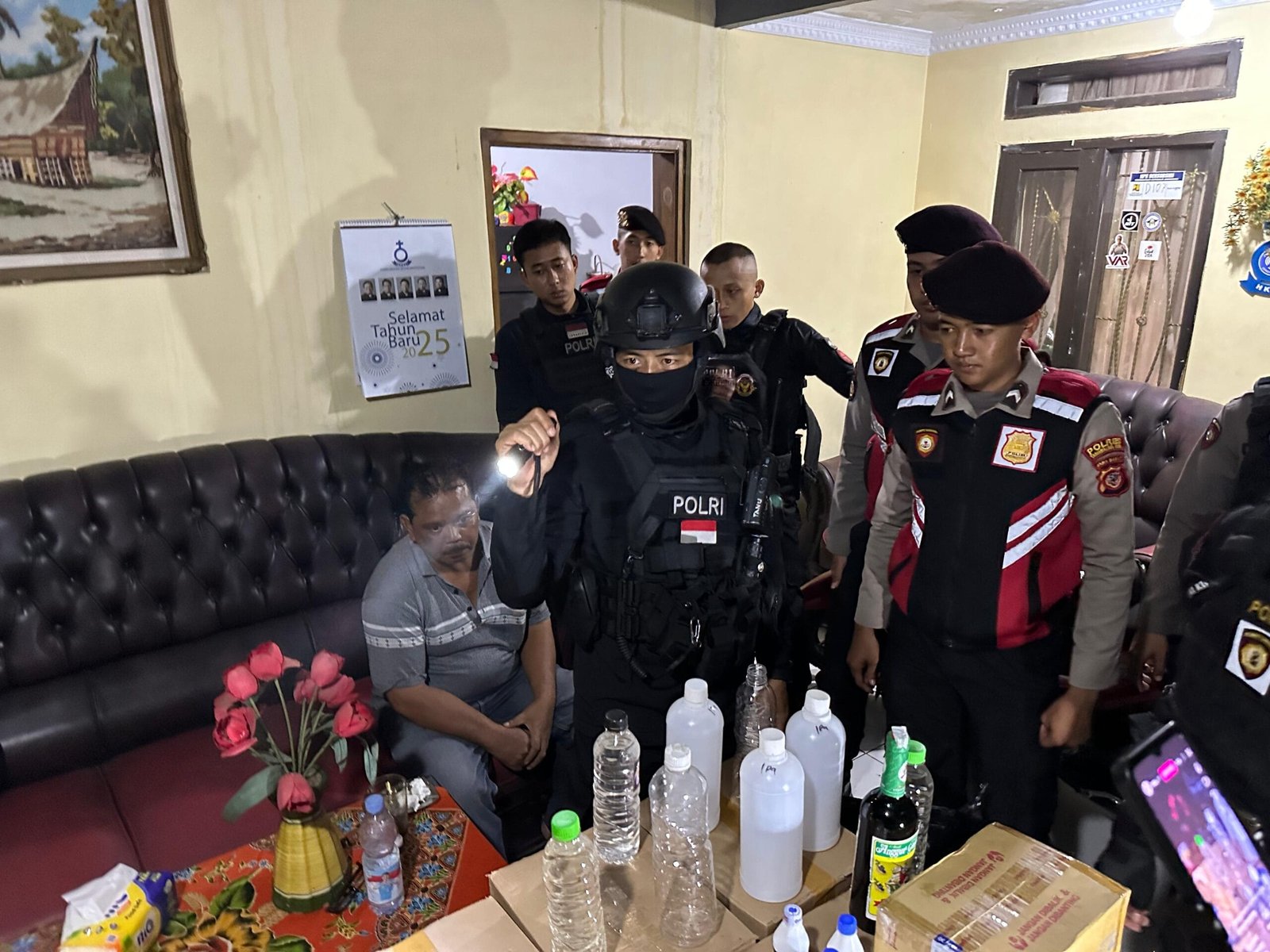Sementara itu dalam kegiatan Patroli Gabungan, Satuan Samapta Polres Tasikmalaya, bersama personel gabungan, berhasil menggerebek sebuah rumah yang diduga menjadi tempat penyimpanan minuman keras (miras) berbagai merek dan jenis di Perum Mega Mutiara, Kelurahan Cibunigeulis, Kecamatan Bungursari, Kota Tasikmalaya, Minggu, 19 Januari 2025, dini hari.