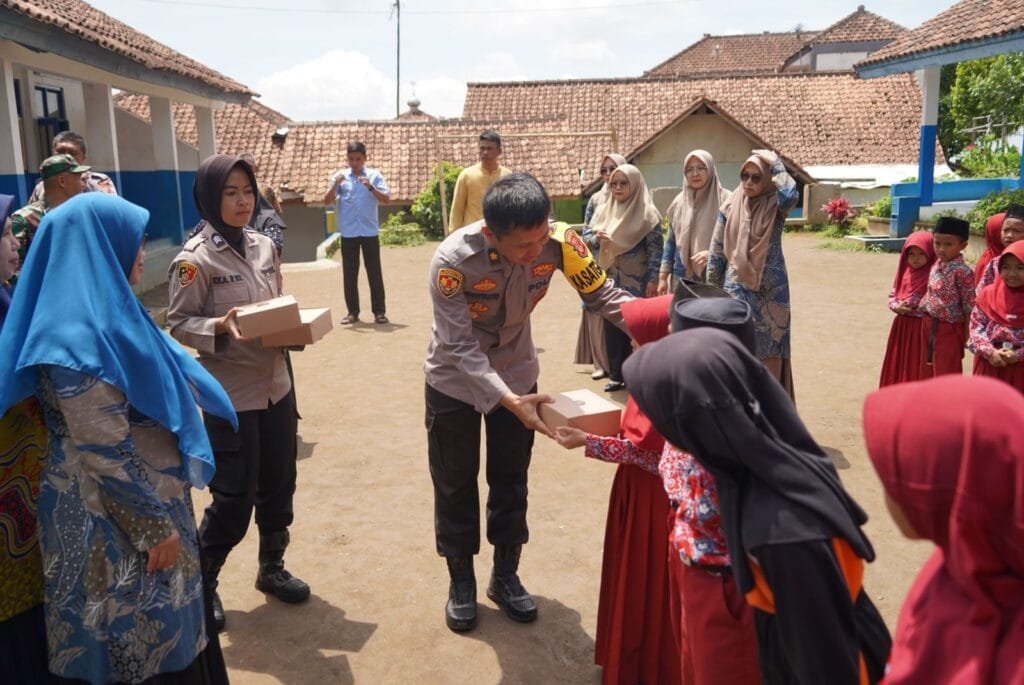POLRES TASIK KOTA – Polres Tasikmalaya Kota menggelar kegiatan berbagi paket makan sehat bergizi secara gratis kepada siswa dan guru di SDN Sukamukti Kecamatan Cisayong Kabupaten Tasikmalaya, Kamis (24/10/2024) Siang.