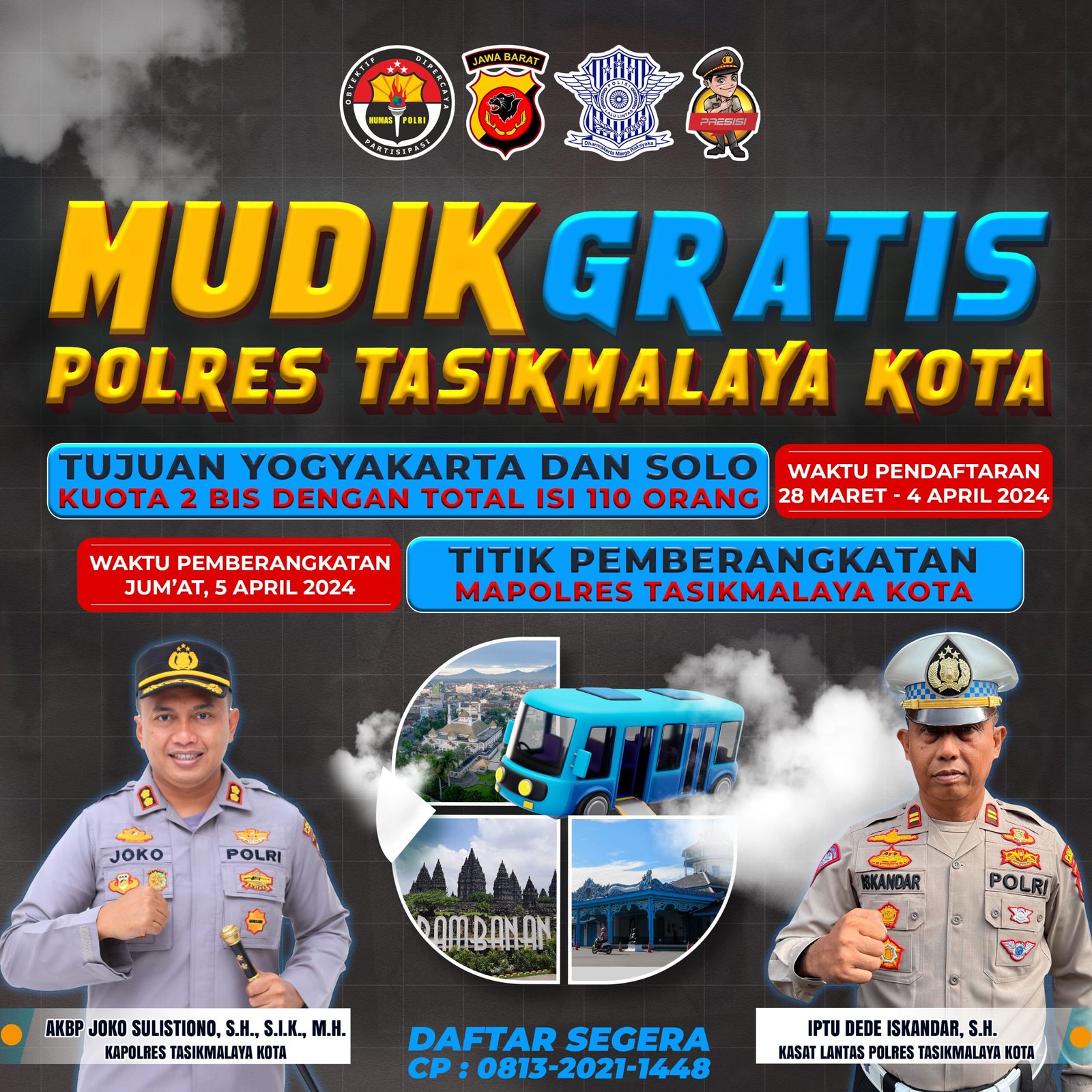Ia menghimbau kepada masyarakat Tasikmalaya untuk mendaftarkan diri dalam program Mudik Gratis Polres Tasikmalaya Kota.