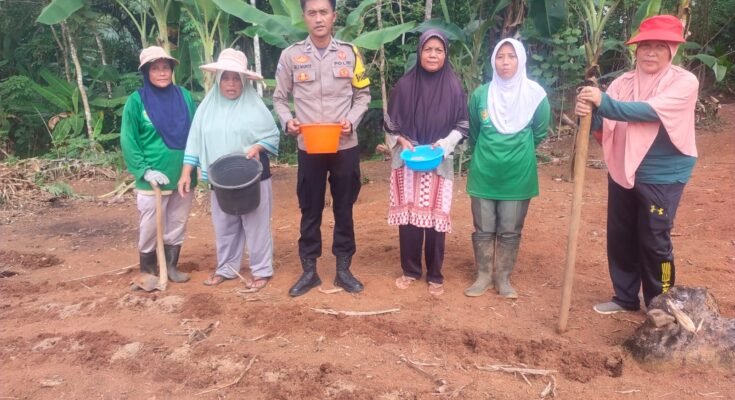Ciamis– Dalam upaya mendukung program pemerintah di bidang ketahanan pangan, Kepolisian Sektor Cisaga Polres Ciamis terus berperan aktif mendampingi dan mendorong keterlibatan masyarakat dalam pemanfaatan lahan produktif. Hal ini terlihat dari keterlibatan langsung Bhabinkamtibmas Desa Tanjungjaya, Aipda Ali Mukti, dalam kegiatan penanaman jagung oleh Kelompok Wanita Tani (KWT) Madasari di Dusun Tenjolaya, Desa Tanjungjaya, Kecamatan Cisaga, Kabupaten Ciamis pada Kamis (03/07/2025), mulai pukul 09.00 WIB hingga selesai.
