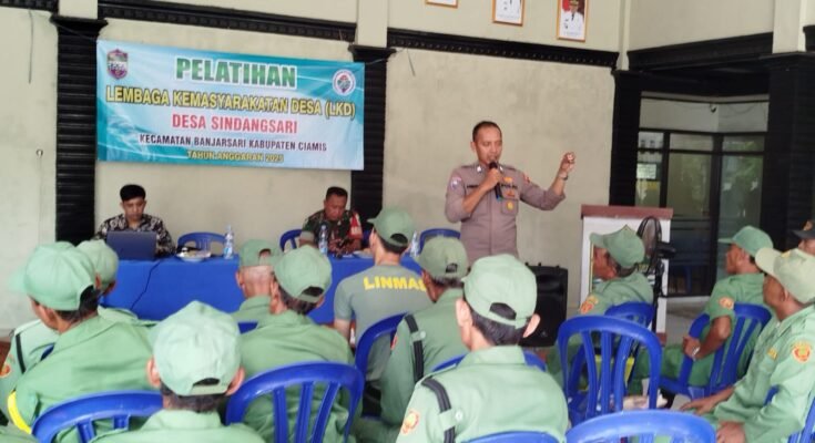 CIAMIS ~ Polsek Banjarsari Polres Ciamis Polda Jabar mendapatkan kesempatan menjadi salah satu narasumber dalam pelaksanaan pembinaan ke anggota Linmas di Desa Sindangsari. Kegiatan ini berlangsung di Aula Kantor Desa Sindangsari, Kecamatan Banjarsari, Kabupaten Ciamis, Jawa Barat, Sabtu (10/5/2025).