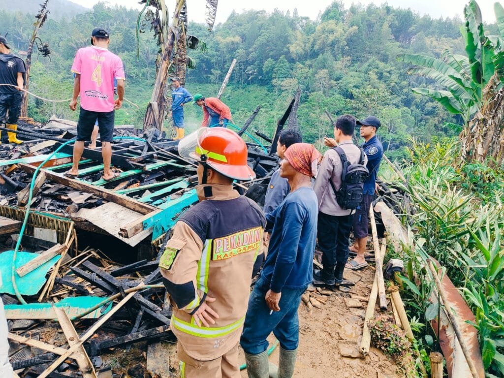 Kapolres Garut AKBP Mochamad Fajar Gemilang, S.I.K., M.H., M.I.K., melalui Kapolsek Banjarwangi Iptu Amirudi Latif, S.H., mengatakan lokasi kebaran ini di Kampung Pojok Desa Mulyajaya Kecamatan Banjarwangi Kabupaten Garut.