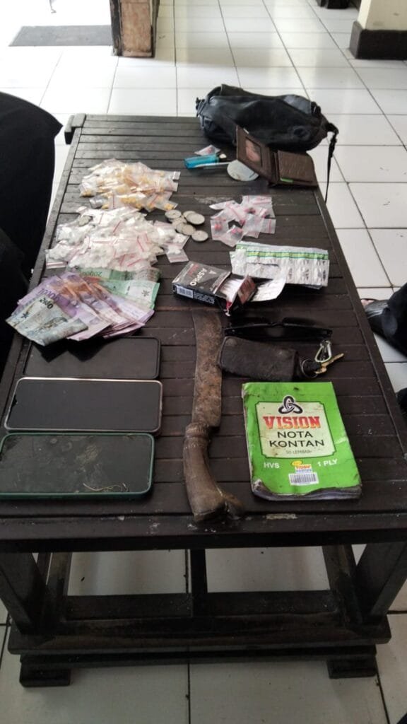 Dari tangan pelaku, ditemukan pil Heximer, tramadol kapsul sebanyak 23 butir, tramadol tablet sebanyak 172 butir, uang tunai Rp 782.000,-, serta dua unit handphone dan satu golok sebagai alat bukti.