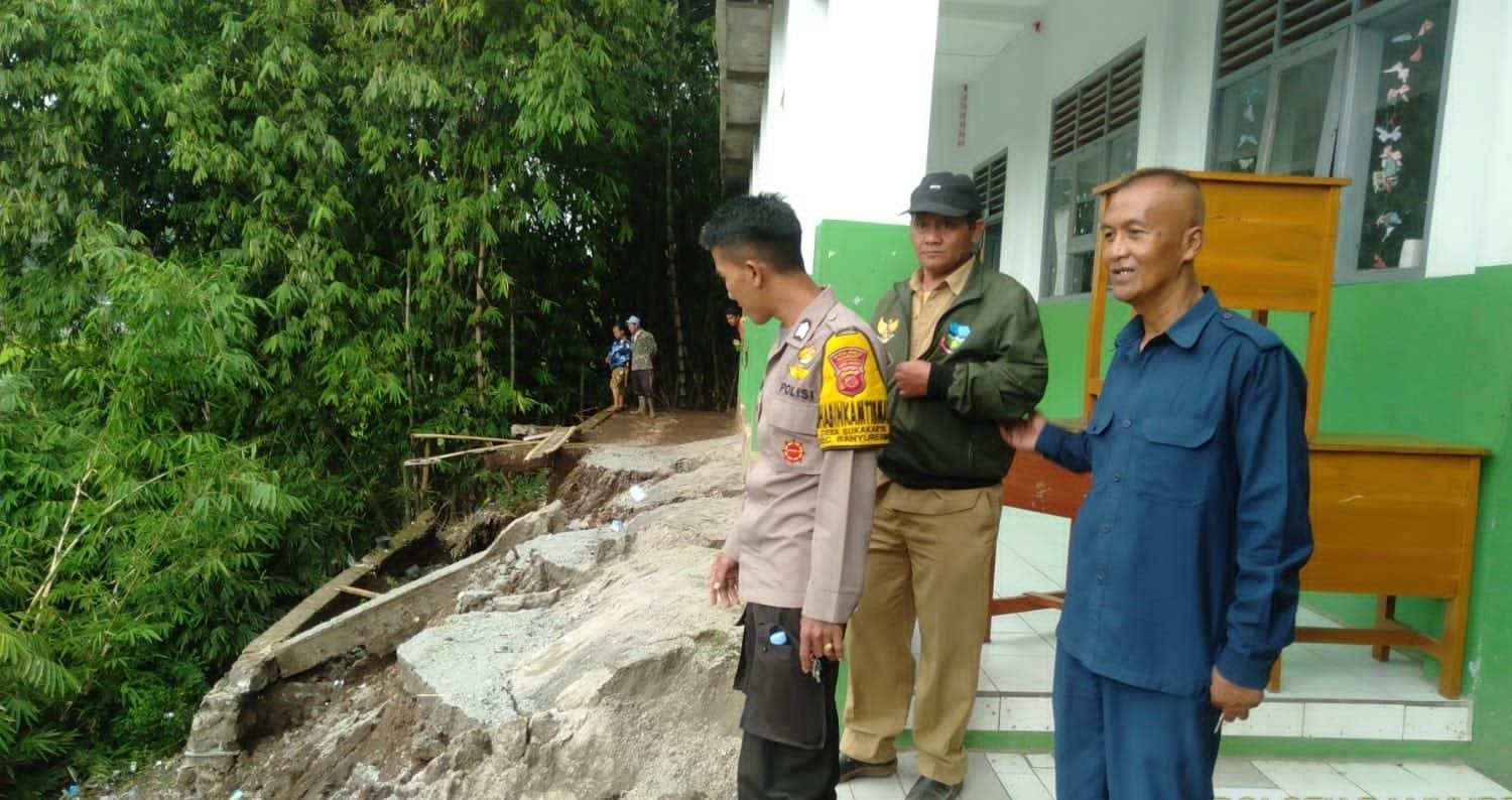 “Sebagai langkah antisipasi, pihak sekolah segera melaporkan kejadian tersebut ke pihak Desa Sukakarya dan memulangkan para siswa dan tidak lama kemudian setelah para siswa dipulangkan, tanah mulai bergerak, dan longsor menimpa beberapa rumah warga di sekitar lokasi.