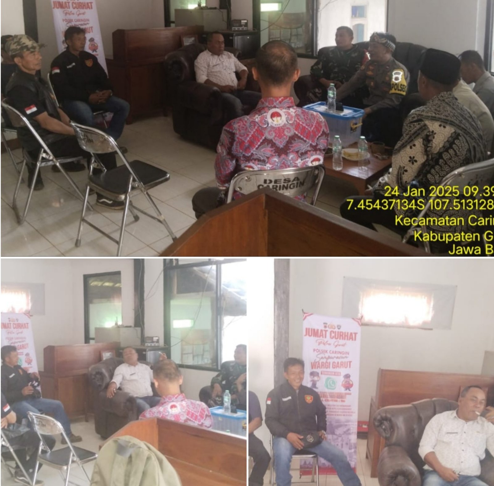Garut.Jejak-kriminal.com-Polsek Caringin Polres Garut. terus berinovasi dalam mempererat hubungan dengan masyarakat. Salah satunya melalui kegiatan Jum’at Curhat, yang di gelar di kantor Desa. Caringin. Kecamatan. Caringin. Kabupaten Garut.
