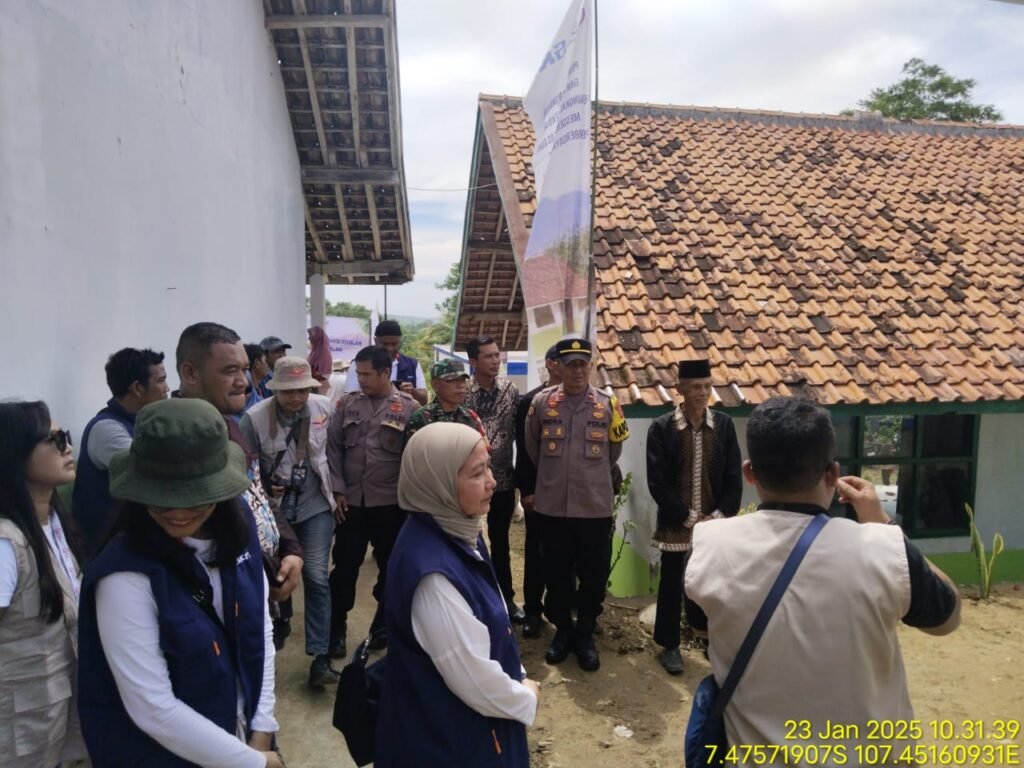 Kapolres Garut AKBP Mochamad Fajar Gemilang.,S.I.K.M.H.M.I.K Melalui Kapolsek Caringin IPDA Indra Koncara. beserta anggota melaksanakan giat Pendampingan dan Monitoring Kegiatan Peresmian dan Gunting Pita Renovasi Kelas dan Sekolah MI dan MTS Miftahussalam bersama Yayasan Tunas Bhkati Nusantara (YTBN) dan SKF Jakarta di Wilkum Polsek Caringin.