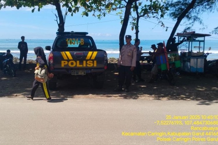 Garut.Jejak-kriminal.com-Polsek Caringin Polres Garut. Dalam rangka mendukung kelancaran, pengunjung objek wisata pantai rancabuaya. Desa purbayani. Kecamatan. Caringin. Kabupaten Garut.”Sabtu (24/1/2025)