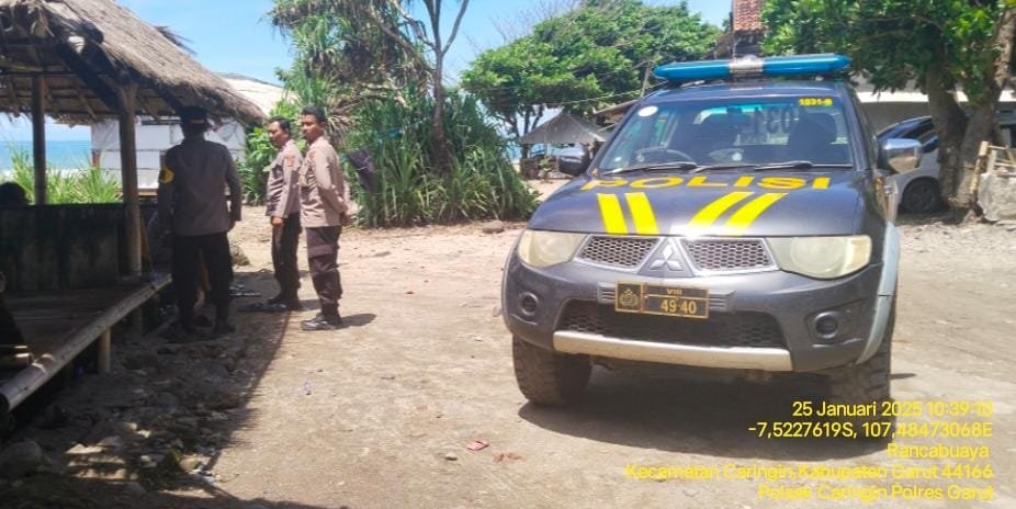 Garut.Jejak-kriminal.com-Polsek Caringin Polres Garut. Dalam rangka mendukung kelancaran, pengunjung objek wisata pantai rancabuaya. Desa purbayani. Kecamatan. Caringin. Kabupaten Garut.”Sabtu (24/1/2025)
